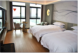 酒店客房寬敞舒適每個房間均配有獨立衛(wèi)生間、電視、空調(diào)和無線WiFi。均配有中央熱水器,24小時供應(yīng)熱水,床單被套一客一換。