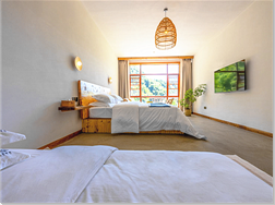 民宿設(shè)施齊全,服務(wù)功能完善,室內(nèi)裝飾到位,客房整潔寬敞,床上用品舒適柔軟,躺在床上可享受山村清晨第一縷陽(yáng)光的沐。黄鸫餐拼氨M情的呼吸清甜的空氣,眺望遠(yuǎn)出或隱或現(xiàn)的云霧纏繞在山巒之中,好一幅山村如畫的美景。