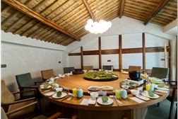 民宿占地10畝、建筑面積2000平方米,主體建筑三棟,布局精巧。內(nèi)設(shè)接待區(qū)、茶歇區(qū)、休閑區(qū)、書吧、餐廳、會議區(qū)和瑜伽頌波館等,室外設(shè)有:特色燒烤休閑區(qū)、兒童游樂區(qū)、泳池、后花園觀景區(qū)、自助燒飯區(qū)等戶外體驗(yàn)和休閑設(shè)施。是一家集吃、住、游、娛、會務(wù)、度假、養(yǎng)生、戶外體驗(yàn)為一體的綜合型村野懷舊民宿。