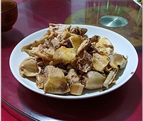 農(nóng)家菜有:開化小青螄、筍干燉豬肉、白切雞、小龍蝦、朱熹白臘肉、五婆強盜炒、芹江長者蝦、錢江源山珍、衢州鴨頭、清水魚、馬金豆腐干、天子喜炊粉等。